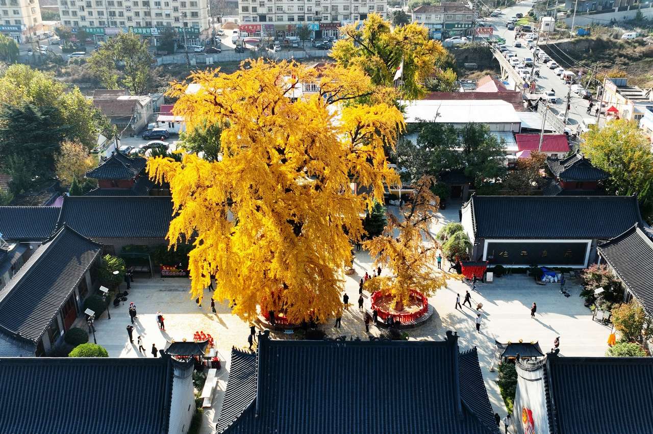 初冬时节中国股票配资门户网站,在山东省青岛市城阳区夏庄街道法海寺,树龄约1600余年的古银杏树流光溢彩、熠熠生辉,吸引众多游客前来打卡观赏。